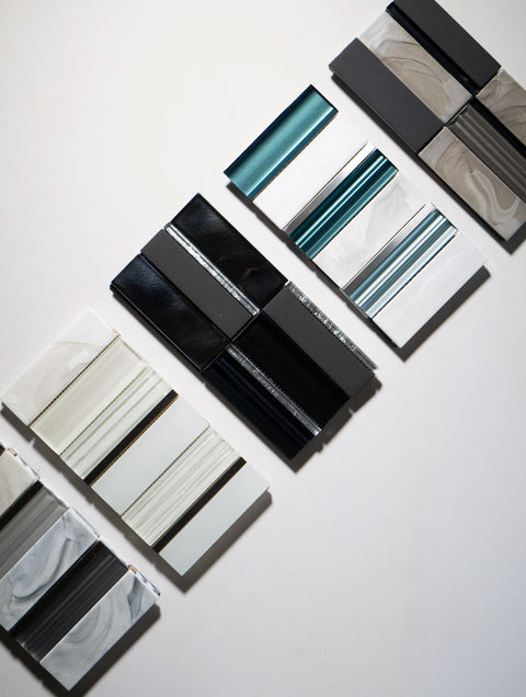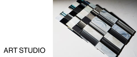 Art Studio commands attention, drenching your walls in polished glass—a sensory feast in five bold colorways. Each random brick mosaic is unique: shifting tile sizes, visuals, and colors move with intention, creating patterns that captivate and surprise.