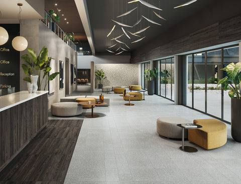 TERRAZZO-LOOK PORCELAIN in go-everywhere neutrals