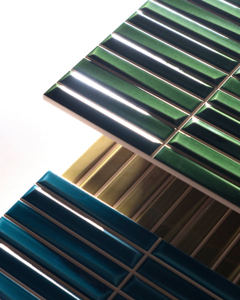 Walls speak first. Finestra gives them power. Ten colorways: five that command through restraint, five that assert themselves with bold authority. SmartSet Tiles pre-scored sheets with grout lines already embedded in glossy whitebody ceramic. The wall stops being background and becomes the force that holds everything else in place. Light hits and transforms.
