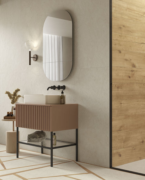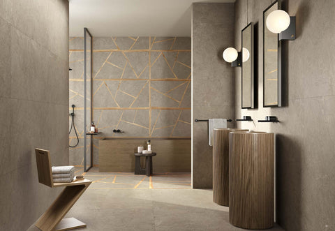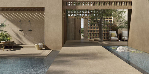 NEUTRAL STONE-LOOK PORCELAIN WITH WOOD VISUAL DECOR