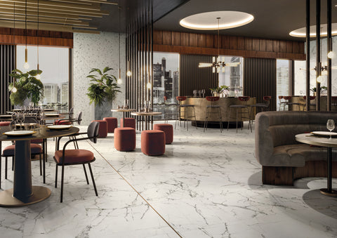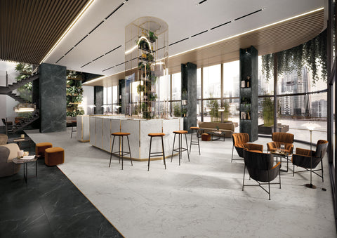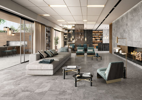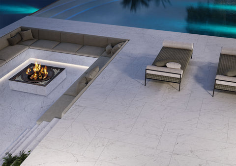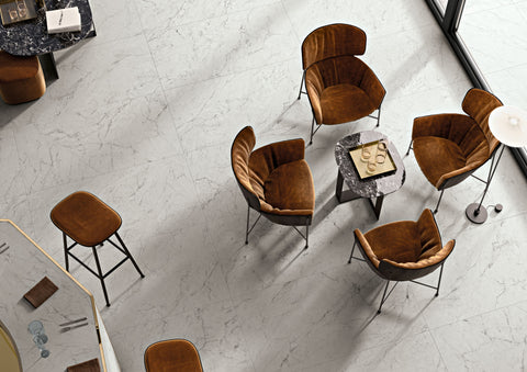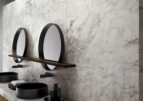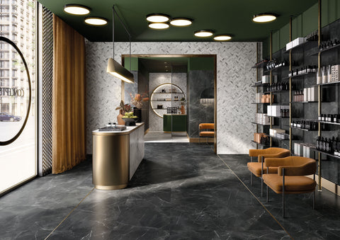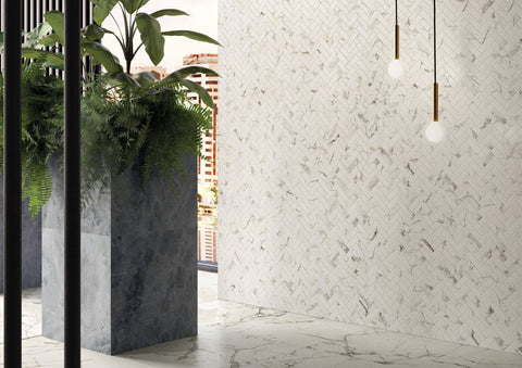 Old Money isn't a trend. It's a pedigree. Inspired by the marble halls of America's most notorious estates—Eyrie, Breakers, Elm Court, Beechwood—this is tile for spaces that refuse to apologize for their ambition. This matte porcelain, marble-look series delivers three large format slabs and an ornamental herringbone mosaic; multi-format versatility means you command the narrative.