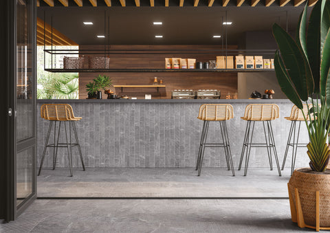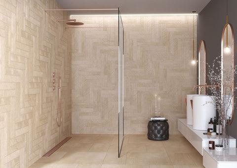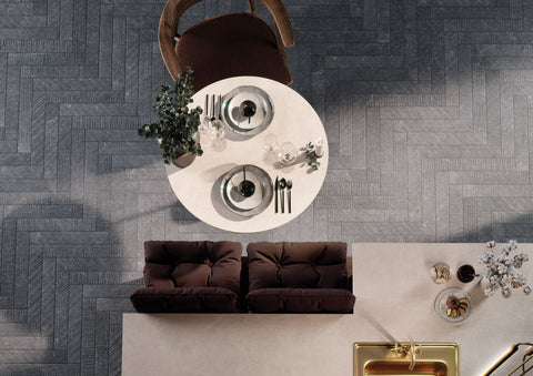 We love it when two completely different ideas come together to make something new. This exquisite blend of stone and wood visuals transcends scale, gracing both modest and expansive spaces with effortless style. Fusion works with music, food, and now tile.