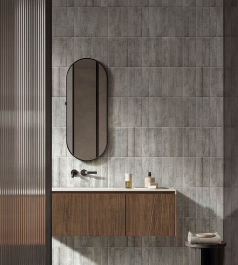 Matte Porcelain Subway Tile with Striated Texture