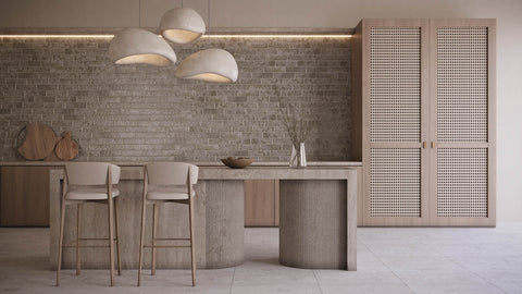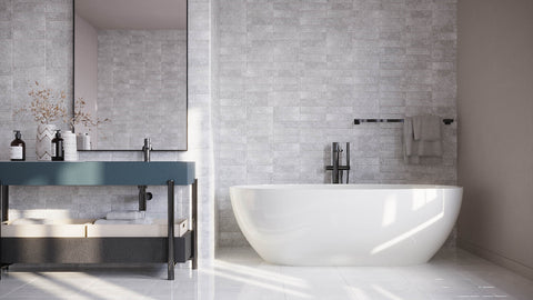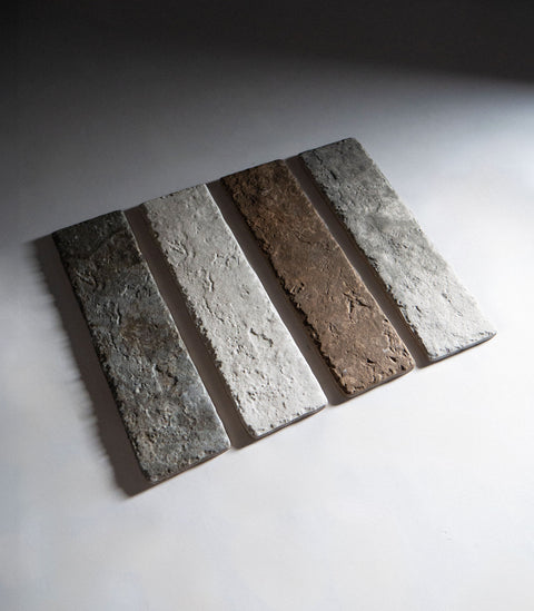 Textured brick-look porcelain subway tiles