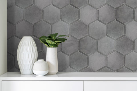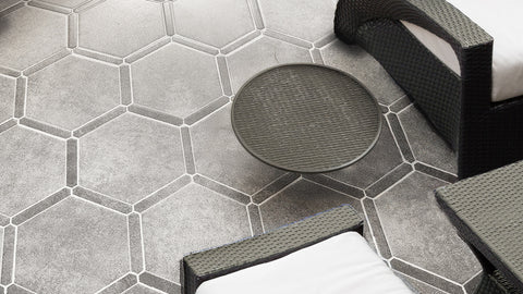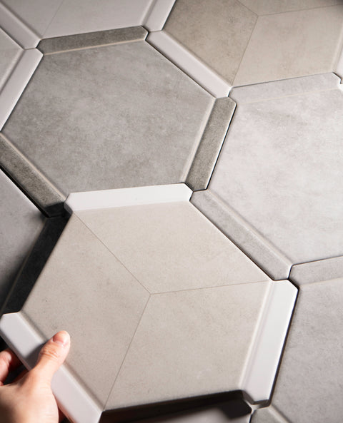INTERLOCKING Muted Concrete-Look Porcelain Hexagons