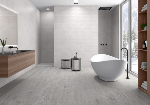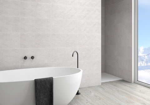 FIND CALMNESS AND STRENGTH WITH STONE AGE, using neutral tones to create a linear look. The 10"x30" format allows for minimalism in any space, and features three different textures to change up the look.