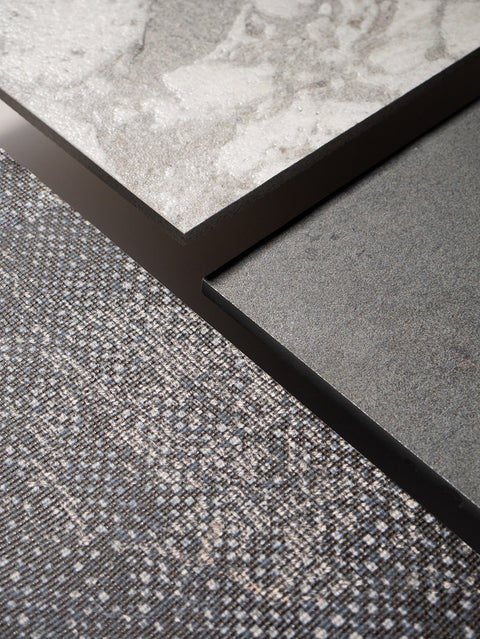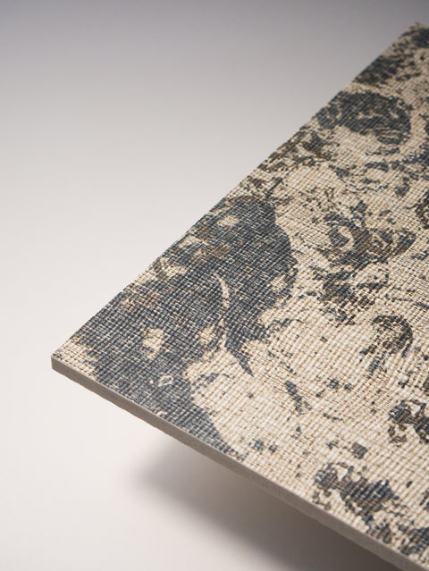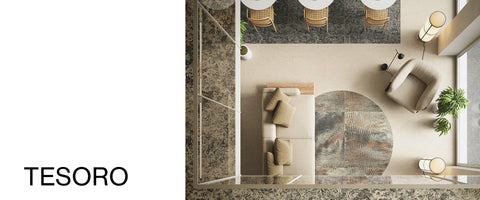 Tesoro reconstitutes the essence of carpet, stone, and fabric—unleashing latent possibilities through porcelain's singular alchemy.
